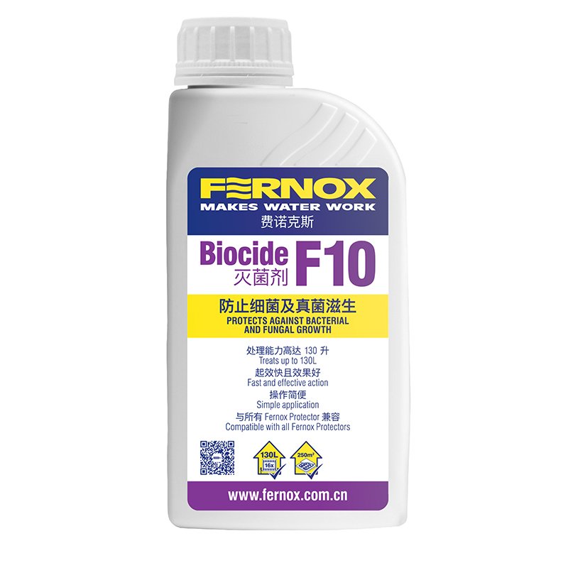 Biocide F10 可防止加热和冷却系统内的微生物污染和生物膜形成。Biocide F10 应与 Fernox