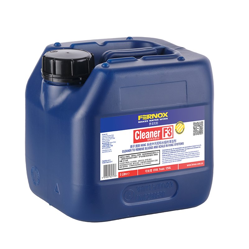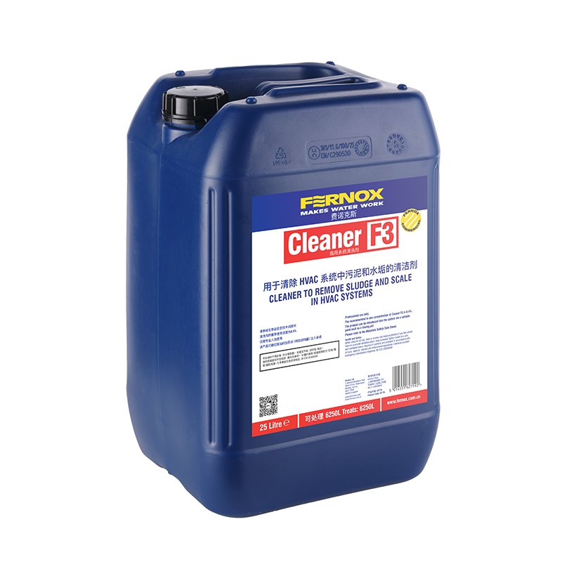 清洁剂 F3 是一种有效、通用、pH 值为中性的不起泡液体清洁剂。可去除出现在中央供暖系统中的污泥、水垢和碎屑,从而恢复供暖效率并消除锅炉噪音。在在根据当地法规和最佳实践要求调试新系统时,清洁剂 F3 是去除焊剂残渣和其他安装碎屑的理想选择。清洁剂